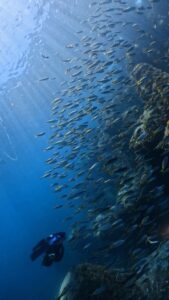 タカベの群れを追いかけたり、